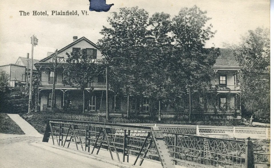 The photos with double images are slides for an antique stereograph. 188018701870188018751911Plainfield Hotel 1880 188019091914, railroad trestle, corner of Mill St. and Brook Rd. Bancroft Inn 1914 19592010, school 1911, school 18802010187518752010, Opera House 1911,...